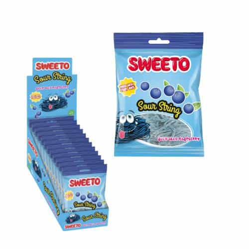 Treat your taste buds to the irresistible flavour of Sweeto Sour Strings Blueberry 12x80g. These deliciously chewy candy strings combine the sweet richness of blueberry with a tangy sour coating, creating an exciting flavour balance that candy lovers enjoy.